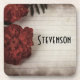 Personalise this plastic coaster with your name in a black art deco font. Bold and elegant. The surface is designed with an autumn floral themed photograph. Faded lined writing paper with some pretty red flowers and green leaves placed around the edges.