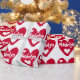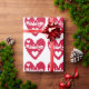 Valentine's Day gift wrap paper features a red heart with smaller white hearts and white text that you can personalise with a name on a white background.