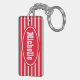 personalised red and white horizontal striped double sided acrylic rectangle key chain