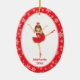 This cute holiday ornament features ballerina in red tutu dancing in a white frame on a red and white snowflake background. Add your child's name and year to personalise. Makes a great gift for your little ballerina.