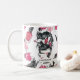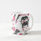 Cool personalised coffee mugs for nail techs. Great Gifts for your favourite nail technician. Make your manicurist smile with this cute messy bun design with red and pink nail polish bottles.