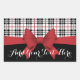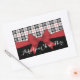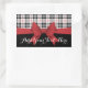This product design features an illustrated red ribbon and tartan plaid pattern in black, white, and red. With its unique classic graphics, it makes modern chic rectangular stickers with personalised text.