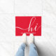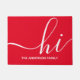 Welcome guests with a warm and friendly greeting using this personalised doormat. Featuring a modern script "hi" in white on a vibrant red background, this customisable doormat adds a touch of charm to any entryway.