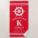 Personalised Red Ship Wheel Nautical Family Beach Towel