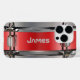 Personalised red snare drum.