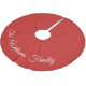 This tree skirt is accented with your family name in white type, on a bright red background. The Family Name is easy to personalise and curves around the outside of the tree skirt, for a timeless and elegant look.