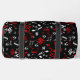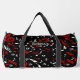 Perfect gift for the music lover or musician with a design featuring a random jumbled pattern of musical notes and treble clefs in red and white on a classical black background. Easy to customise with your own text on a coordinating accent.
