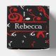 Perfect gift for the music lover or musician with a design featuring a random jumbled pattern of musical notes and treble clefs in red and white on a classical black background. Easy to customise with your own text on a coordinating accent.