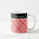 Modern red and white gingham pattern coffee mug you can easily personalise with your name in modern white typography against a black background. Perfect as a personalised Holiday or Birthday gift for him. Buffalo plaid, check or chequered pattern. If you need any help or matching products, please contact us at happydolpinstudio@outlook.com. Exclusively designed for you by Happy Dolphin Studio.