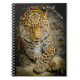 Personalised note book with a colour photo of the front view of a resting Leopard laying down with its front paws crossed, head slightly bowed, and eyes partially closed. Add your name, monogram, or other text. Photo credit to Karen Grigoryan, www.grigphoto.com. Approved licensing purchased and in place. Email niteowlstudio@gmail.com if you need assistance.