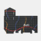 Retro 1980’s style primary colour paint strokes splatter pattern on a geometric black and white dotted background.