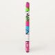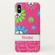 This cool iPod Touch phone case features a retro and trendy pink, blue lime green and white peace sign flower design and the name of your choice.