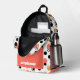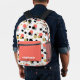 This stylish retro backpack features abstract polka dots in coral, black, gold and stripes. Add your name to personalised.