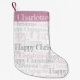 Personalised retro stencil Christmas stocking with purple top.