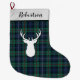 Green, purple, and black check and deer custom large Christmas Stocking. Add a name by clicking the "Personalise" button