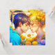 Personalised anime girl and boy kissing romantic Valentine's Day card.