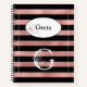 Elegant rose gold and black stripes with an ornamented initial make this a cute and classy notebook. Personalise it with your name or customise it for someone else!