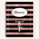 Personalised Rose Gold Stripes with Initial T Notebook