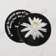 Photo of a White Water Lily with mostly Black background on this unique round card. Text on back is fully customisable.