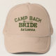 Get all the campers in your bride tribe a cute hat to wear on their hikes or while lounging around the lake. This Camp Bach hat, with forest green text and accents has major 70s camp vibes. Customise the role: BRIDE, BABE, SQUAD, MOH, etc. and personalise with a name or other text of your choice. A hand-drawn arrow adds to the rustic charm.