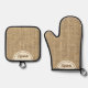 Personalised Rustic Simulated Burlap Oven Mitt & Pot Holder Set