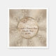 Personalised Elegant and Rustic Wedding Napkins with YOUR TEXT (cocktail or choose luncheon rustic napkins) . Type in the Couple's NAMES and their Wedding DATE or Your Special MESSAGE or Delete it. CALL Rodney or Linda to create matching and coordinating rustic theme wedding supplies and party ideas. Beautiful ecru off white swirls against a taupe circle frame satin look background on rustic stone-like napkin. Call Rodney or Linda to make colour, text or design changes. Free custom design service: CALL Rod or Linda at: 239-949-9090