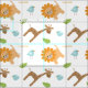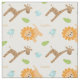 Adorable fabric design features an orange lion, a brown giraffe, two blue birds, and a green leaf and can be personalised with your child's name or any text of your choice.