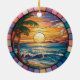 A Personalised Travel Souvenir Ornament designed to celebrate your unforgettable trip. Whether you went for work, enjoyed a romantic getaway, or took part in a school exchange program, this ornament commemorates a special moment you’ll always cherish and want to remember for years to come. This ornament features a stained-glass-style design of a beach with waves at sunset, creating a truly eye-catching piece.