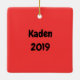 at christmass as a hanging decration for the chritmass tree.. its white porcline or cramic but very well made with added photo on one side.. also has a lovley red bag to keep it in.. execlent printed text in bold and black stands out well aganst the blue background of the photo.