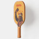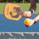 A whimsical illustration of a sasquatch playing pickleball. Personalise with a name. The tagline is a pun on bigfoot and foot faults - choose to keep the tagline or replace with your own funny phrase. Background colour can be changed on both sides. © Kimbellished, LLC