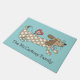 A pattern of cute little sausage dogs happily running along with a heart balloon tied to their tails.