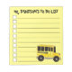 To Do List shopping note pad design features an original marker illustration of a yellow school bus. Perfect for a bus driver or teacher. Just personalise with your information.