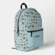Colourful design with icons related to school. Great for kids starting school to get them excited about learning. Icons include backpacks, books, Erlenmeyer flasks, pencils, crayons, globe, scissors, buses, and microscopes. Blue background. Personalise front pocket with child's name.