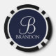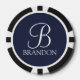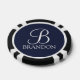 features personalised monogram in white classic script font style and name in white classic serif font style on navy blue background.