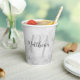 featuring personalised name in grey modern script font style and monogram in light grey modern script font style as background,