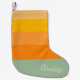 Bring bold vintage charm to your holiday decor with this personalised retro colour block Christmas stocking! Featuring warm, layered shades of golden yellow, burnt orange, and soft sage green, this design evokes cosy mid-century style. The bottom is customised with a name in elegant script—perfect for each family member, child, or guest. A unique and trendy stocking that blends nostalgia with modern simplicity!