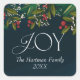 Spread holiday cheer with this customisable square sticker. Featuring "JOY" in elegant script, adorned with festive greenery and red berries, it's perfect for adding your family name and year to gifts, cards, or decorations.