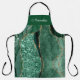 Personalised Sequin Green Agate Apron with name in script lettering. Chic emerald green sequin style and marble geode pattern.