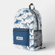 Make a splash with this custom shark-themed backpack for kids! Featuring a vibrant watercolor shark pattern with great white sharks, hammerheads, and more, this ocean-inspired design is perfect for little marine life lovers. The personalised name patch makes it truly one-of-a-kind — ideal for school, travel, or daycare. Crafted for durability and comfort, this backpack is as practical as it is fun. A thoughtful gift for shark fans, ocean explorers, and adventurous boys!