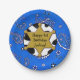 Add the child's name and birth year onto these cute blue bandanna cow pattern an sheriff badge birthday plates.