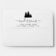 Personalised White 5x7" envelope with Signature Script and pine tree images.
