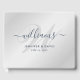 Complement your elegant navy blue and silver wedding with our personalised navy blue and silver monogram wedding guest book with modern script. Easily personalise online. Matching items available for this minimalist monogram wedding guest book.