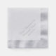 For a sophisticated supper, customise a silver colour paper napkin. Perfect for a wedding reception or corporate event. It includes a silver-coloured (C0C0C0) script font. Sold in quantities of fifty.