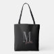 Elegant Modern Personalised monogram and name tote bags in black and pink colour, simple and stylish. great personalised bridal party gifts at wedding party, bridal shower or bachelorette party. Customise the monogram or name with your choice of colour and font.