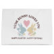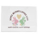 This design features silhouettes of bunnies (blue & yellow, pink & green) and a heart. The simple animal design with personalised text makes a cute modern and unique gift bag - SOME BUNNY LOVES YOU | HAPPY EASTER, HAPPY SPRING!