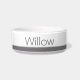 A personalised pet dish in shades of grey and white. Your pet's name is set in a modern grey font above a border of coordinating shades of grey.