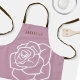 The product design features a simple large rose illustration in retro pink and white. This elegant botanic design makes a modern and unique apron with personalised text for kids.