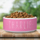 Pink Simple Custom Name Personalised Pet Food Bowl.