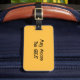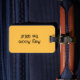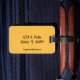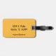 Personalised luggage tag on a warm yellow solid colour background. Add your name, home address, and email address or any other details as you wish.