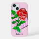Personalised Single red rose art with a pink wash background. Full personalised with a name of your choice to create a unique single red rose art gift. Rose graphic under licence from the graphics factory